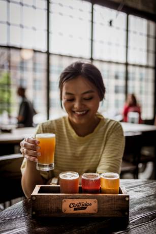 - Cartridge Brewing – Housed in the historic Peters Cartridge Company factory in Maineville, this brewery is a must for craft beer lovers. With bike racks out front and a menu that goes beyond bar food, Cartridge makes it easy to relax after a ride. Their rotating seasonal beers pair perfectly with the crispness of autumn.