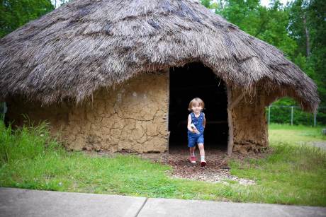 This was my favorite discovery. Just outside the children’s museum is an enclosed garden with hand-built replicas of Hopewell structures. These are just the right size for kids to explore, and mine loved going in and out of each one! The bark siding, stick frames and mud cement will surely impress and inspire any construction-loving kid.