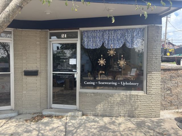 This charming antique shop also offers wicker repair, seat weaving, caning, furniture repair and upholstery.