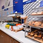 Our free hot breakfast bar is the perfect way to start your day with our signature cinnamon rolls, scrambled eggs, bacon or sausage, biscuits & gravy, fresh fruit, coffee, juice and many more healthy breakfast items.