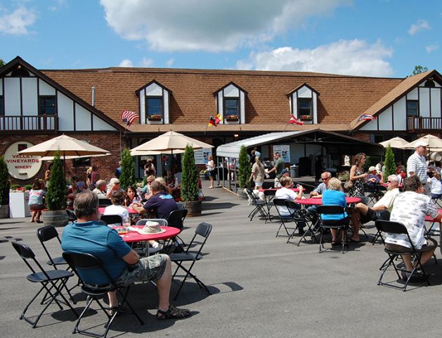 One of Warren County's unique gems, Valley Vineyards invites guests to a wide variety of local experiences all in one place-from a romantic date night for couples to a stylish getaway for an intimate gathering of friends. The Wine Tasting Room is open for enthusiasts every day, allowing guests to sample award-winning table and dessert wines and craft beer from the vineyards of the Ohio River Valley where the Schuchter family has been growing and bottling since 1970. This region of glaciated soils contains all the right elements for growing premium grapes, and the vineyard raises 28 varieties of them to use in their custom wines.The Cellar Dweller craft beers include a well-rounded catalog of creatively named brews such as Copperhead American Pale Ale, Hoppy Poppy India Pale Ale, Lookout Stout Irish Dry Stout and Shawesome Black IPA. Outdoor grilling areas for cookouts welcome visitors to relax in the scenic countryside on weekends, while indoor dining rooms offer a friendly atmosphere and old world decor including fireplaces and a dance floor. The Cabernet room seats up to 160 guests for parties or meetings.Whether you are looking for a private getaway as a couple or want to plan a party for groups large and small, Valley Vineyards invites you to share its passion for local wine, delicious food and great fun.